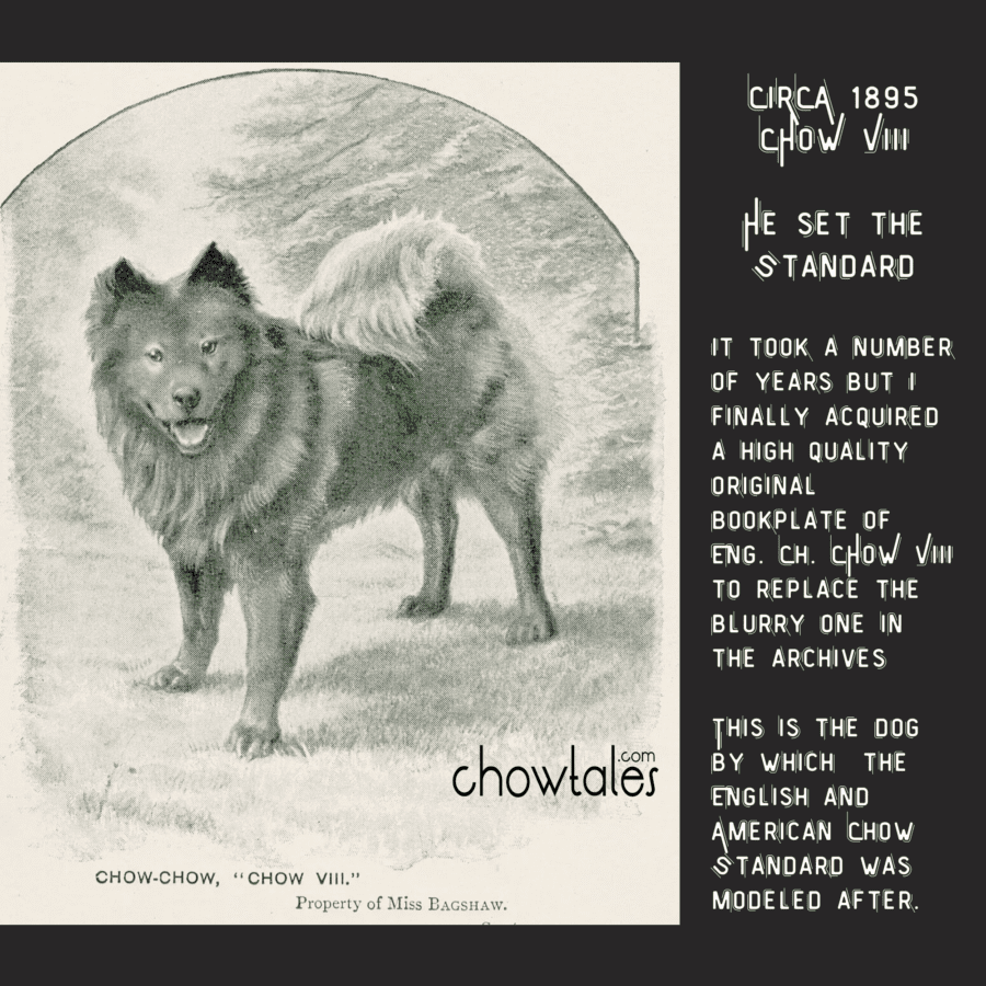 - Chow VIII was benched at a London show in 1897 and a sensation was caused when he was purchased by J. V. Faber for £100