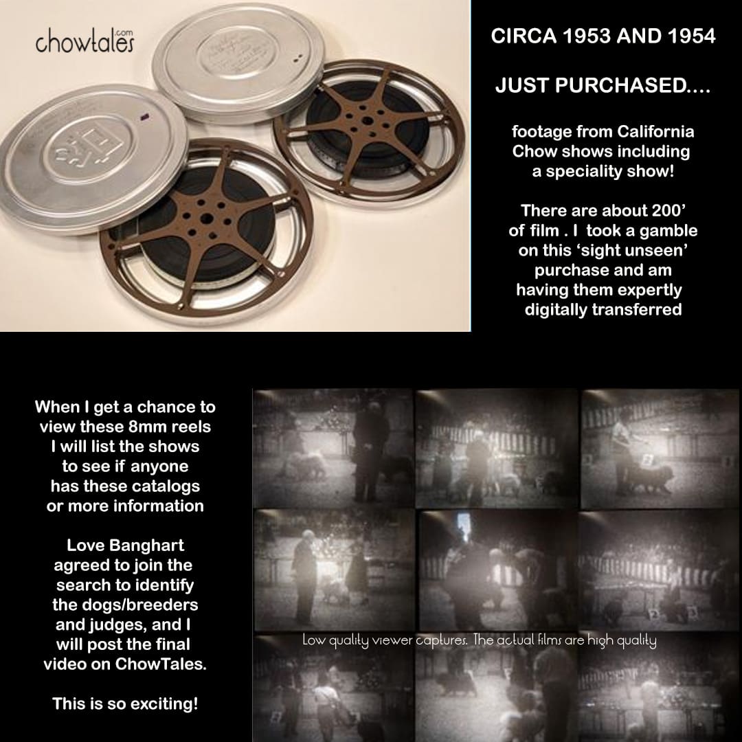 I will have the reels professionally digitized so Love and I can view them , then we can start on the task of trying to ID the dogs and people in the video. One of the reels contains a Specialty show so chances are, some of the best in the area could be in attendance. With Loves’ in-depth local Chow knowledge from living in California many years, her initial thoughts were we may see the following: