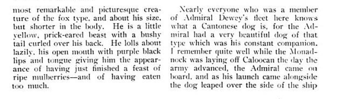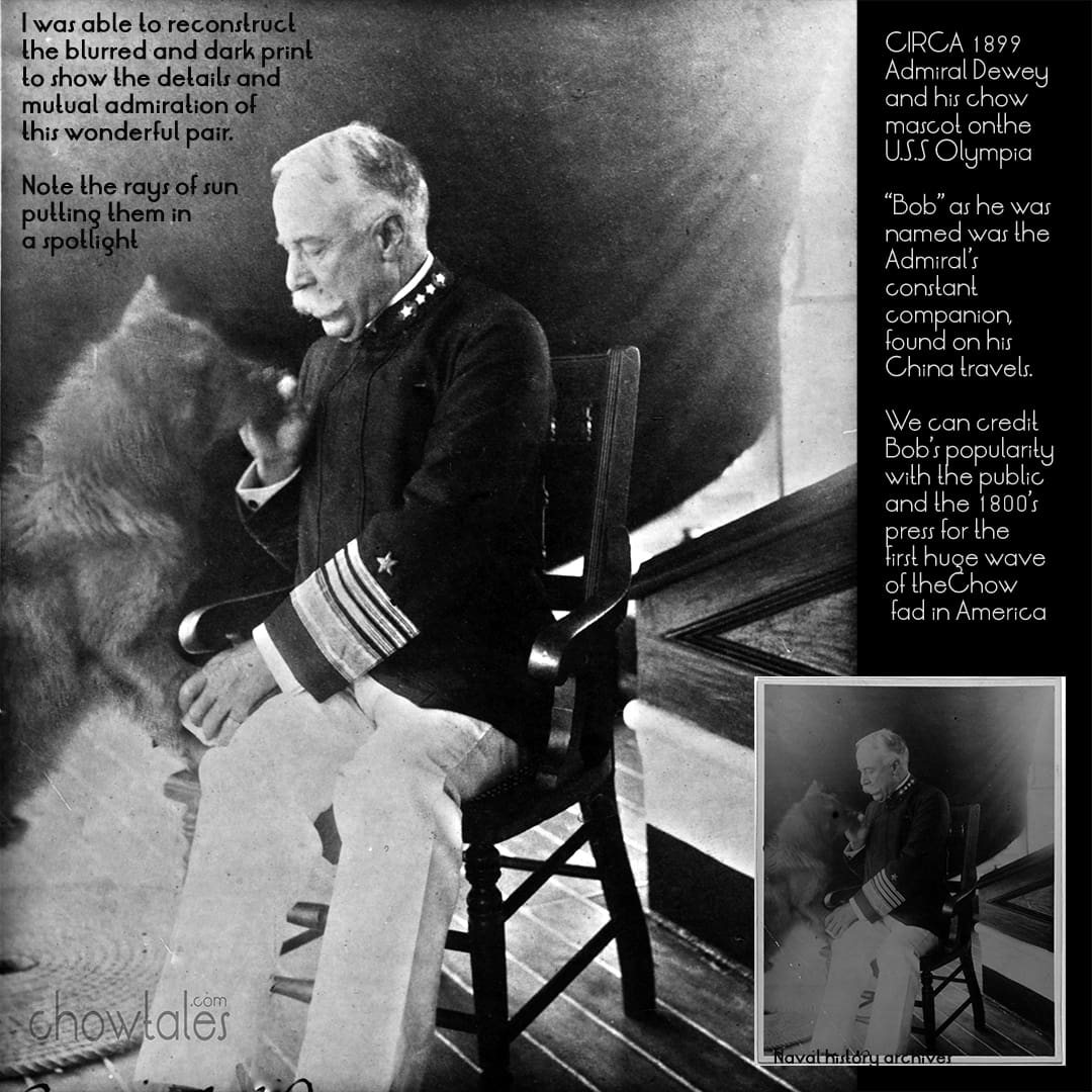 Below are a series of photos I have been sitting on for quite some time waiting to pull all the clippings together into an article and it all began with this original 1917 press photo I acquired was released following Admiral Deweys death the same year. This loyal little Chow mascot found on the streets of Canton China during Dewey’s travels, was written about often in the papers and magazines of the day (late 1800’s.)