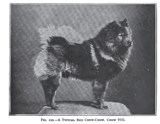 Since then the breeding and exhibition of Chows has gone on apace. Mrs. Jarrett of Philadelphia founded the first American Chow kennel and got recognition for the breed from the American Kennel Club.NOTE THE DOG TO THE RIGHT, CHOW VIII