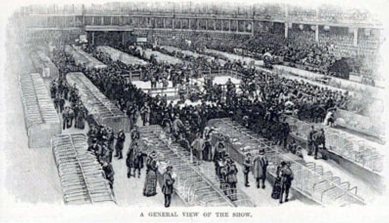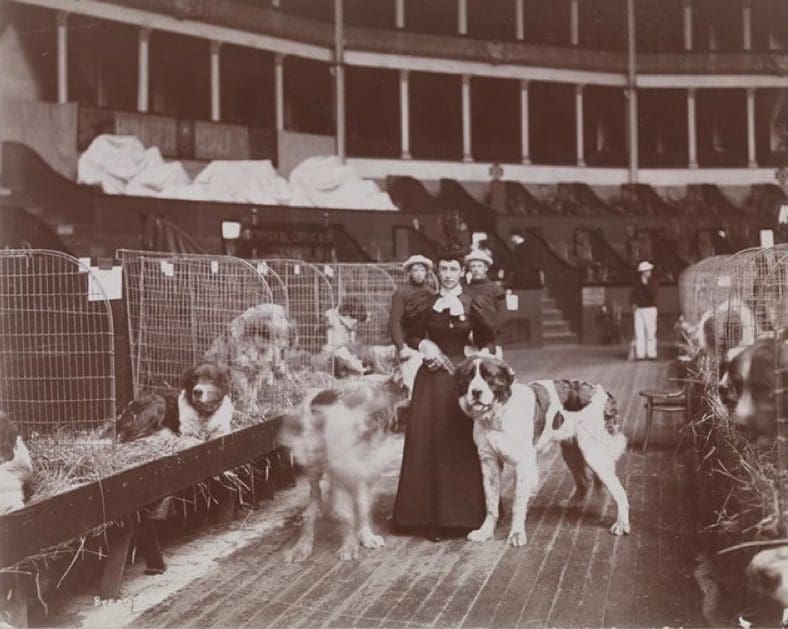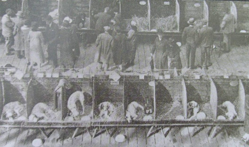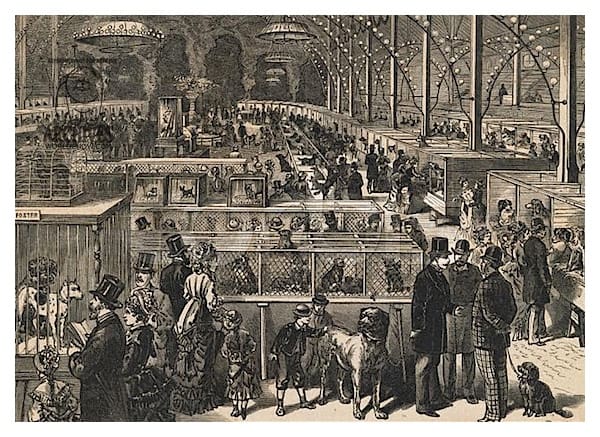 This kind of dog show in the photos above was called a BENCHED SHOW. All the dogs were partitioned off in designated spaces, on public display for the entire day as the show was running. Westminster Kennel Club is one of the 6 shows left in the USA which are still benched.